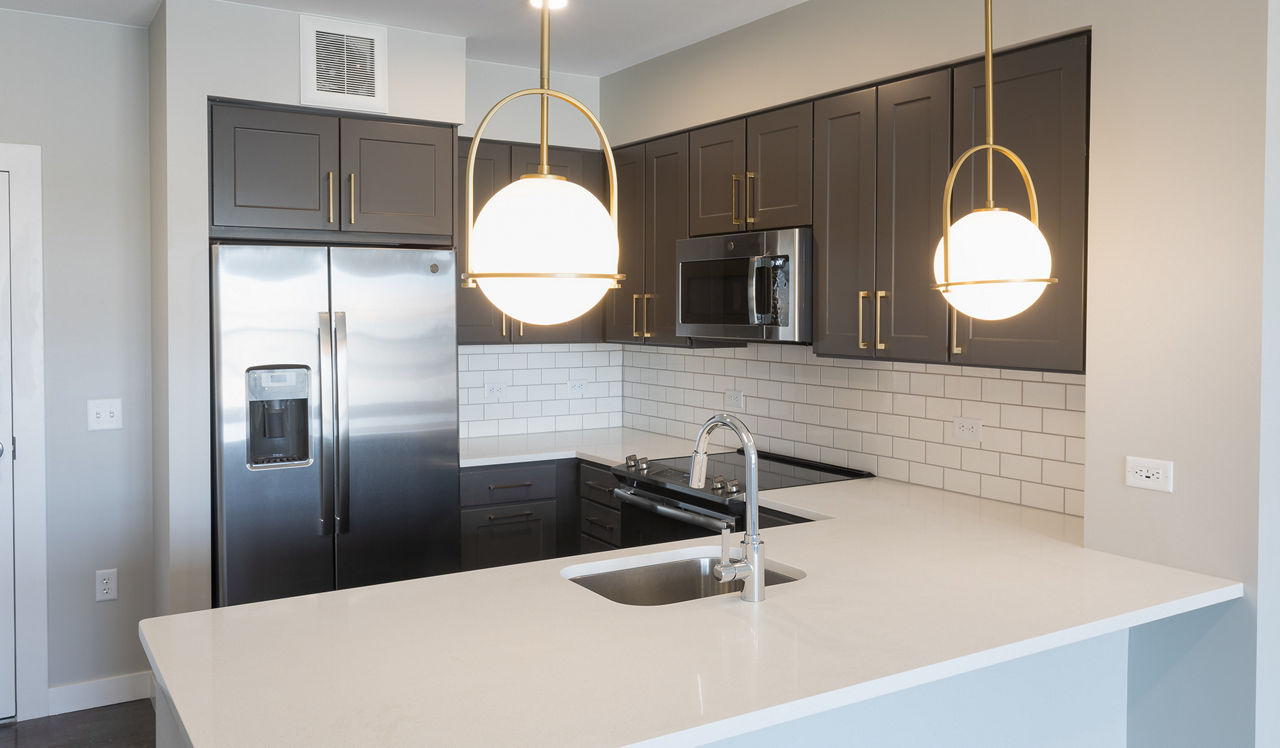 This 1-bedroom, 1-bathroom floor plan features an open concept layout with a spacious living and dining area.